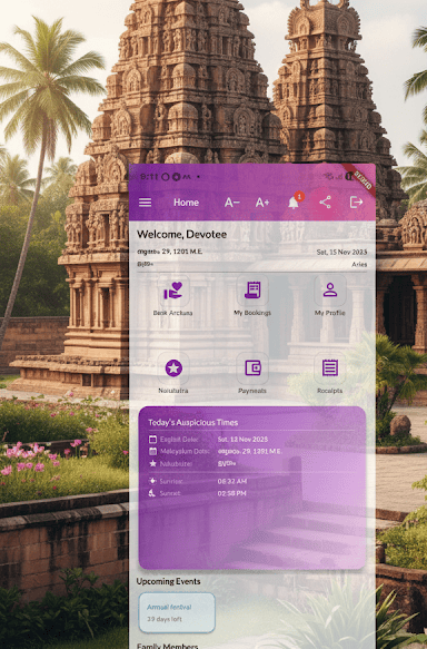 Easily book archana, pay subscriptions, and donate to your family temple online from the app